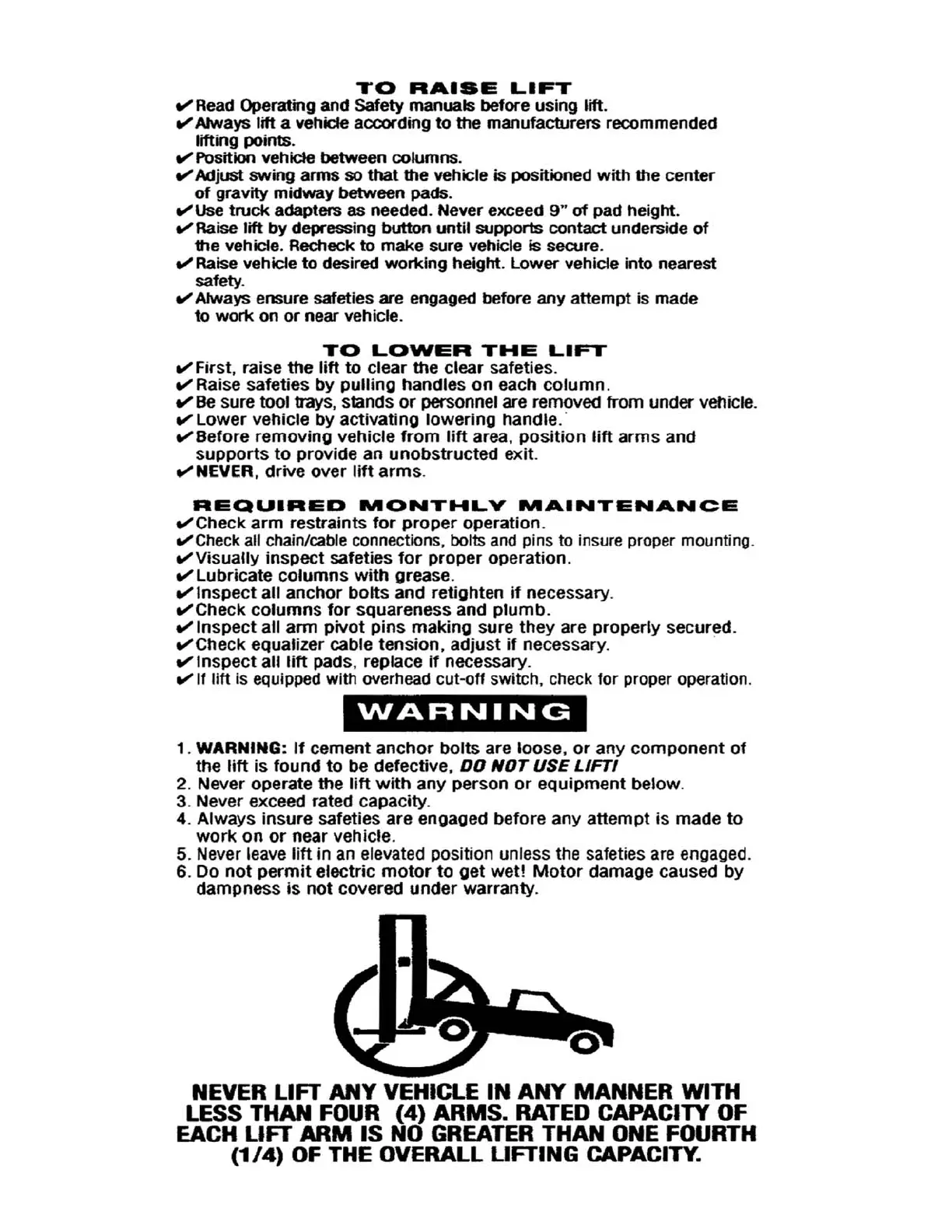 BendPak XP Series - Operation Procedures; To Raise Lift; To Lower Lift; Maintenance