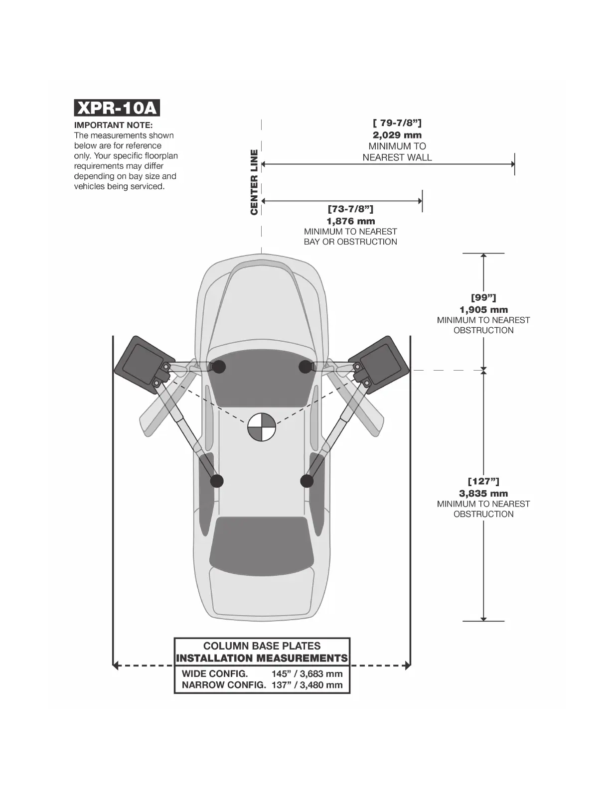LIFT HEIGHT CLEARANCE NOTE: There must be a 1” MIN distance from top of lift to nearest obstruction.