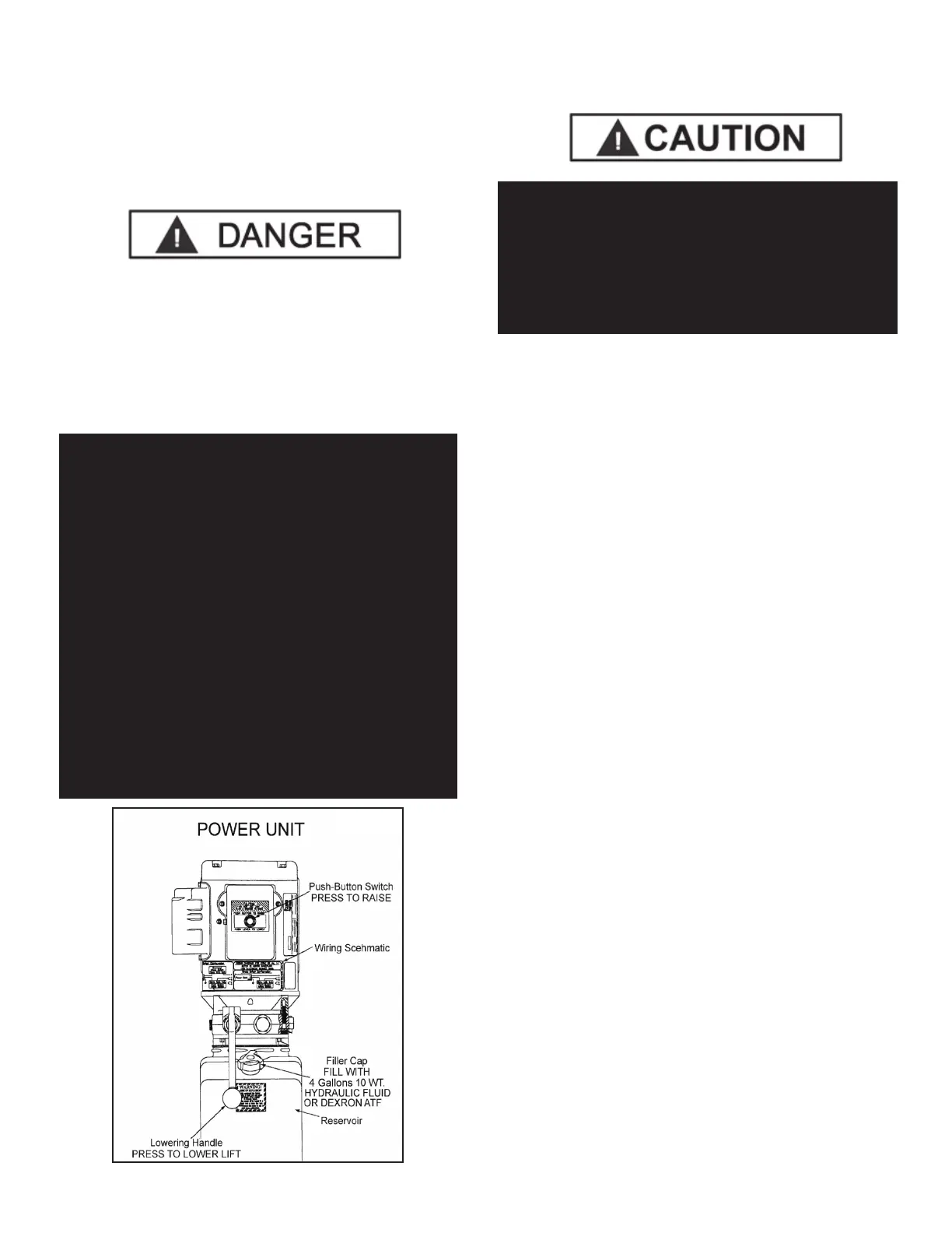 1. Make sure the power unit reservoir is full with four