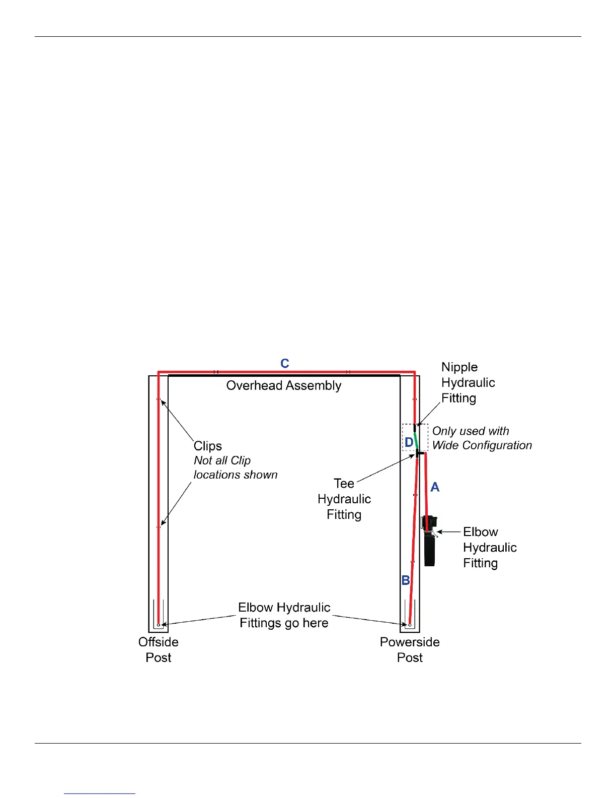 clarity. Drawing shows Long Hydraulic Line (C) in place across the Overhead Assembly, but that
