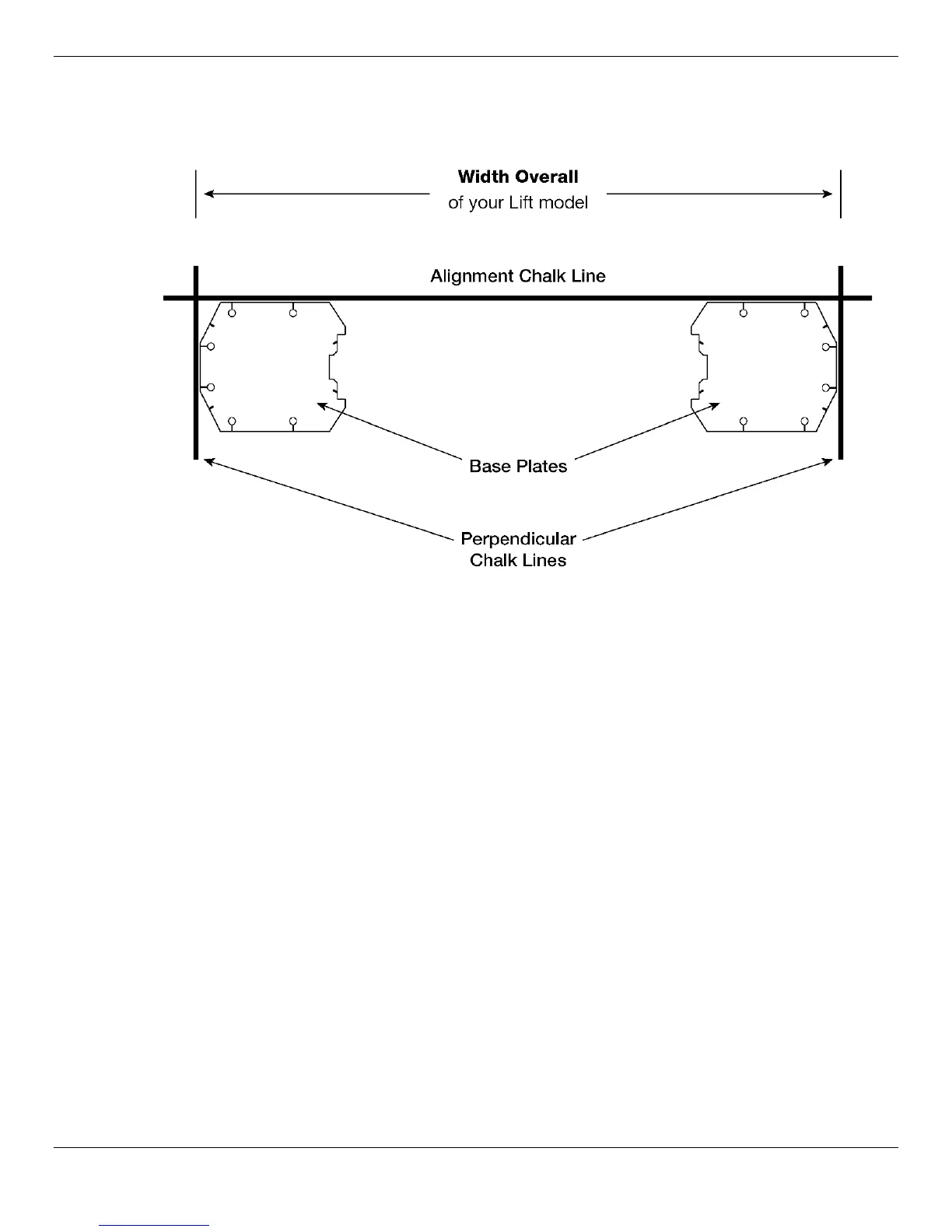 2. Create an Alignment Chalk Line at the Front of the Lift. For Symmetric Lifts, see the drawing above.