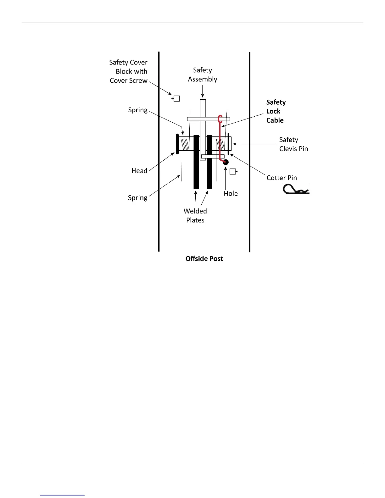 The Safety Assembly on the Offside Post is virtually the same as on the Powerside Post except that it