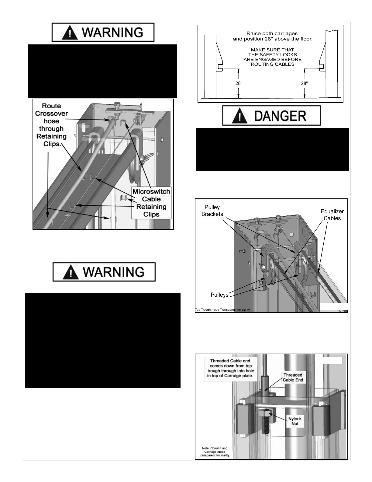 2. With the Carriages locked at 28” off the floor, route