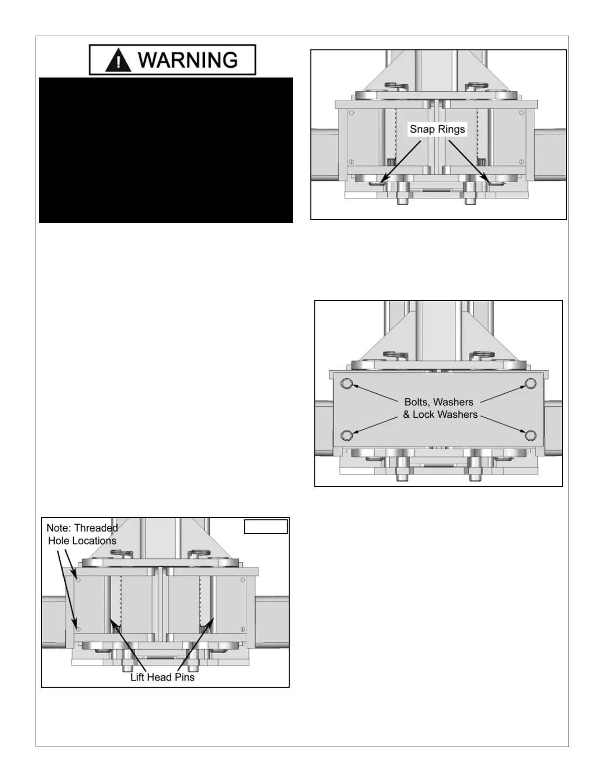 plate threaded holes to insure proper Lift Arm placement.