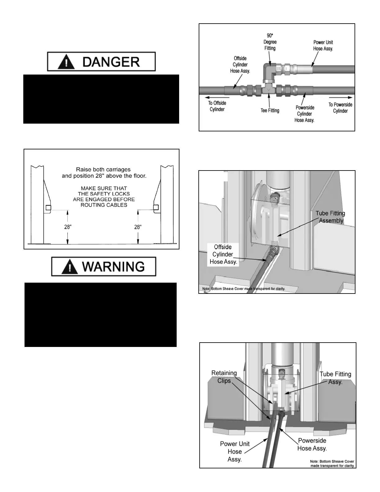 1. Raise and lock each Carriage approximately 28”