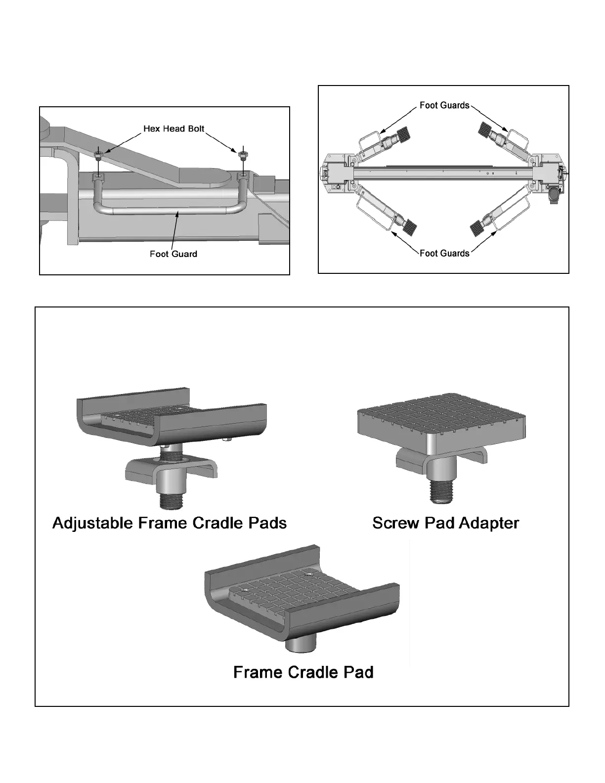 OPTIONAL FRAME CRADLE AND SCREW PAD ADAPTERS