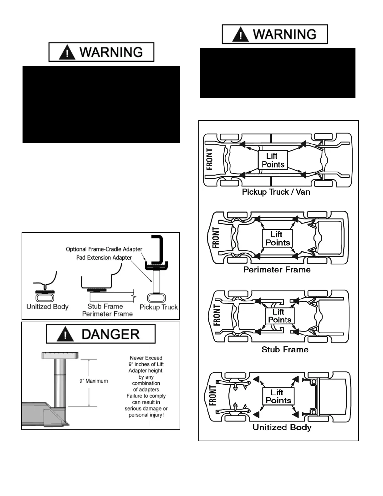 adapters at vehicle manufacturer’s recommended lift