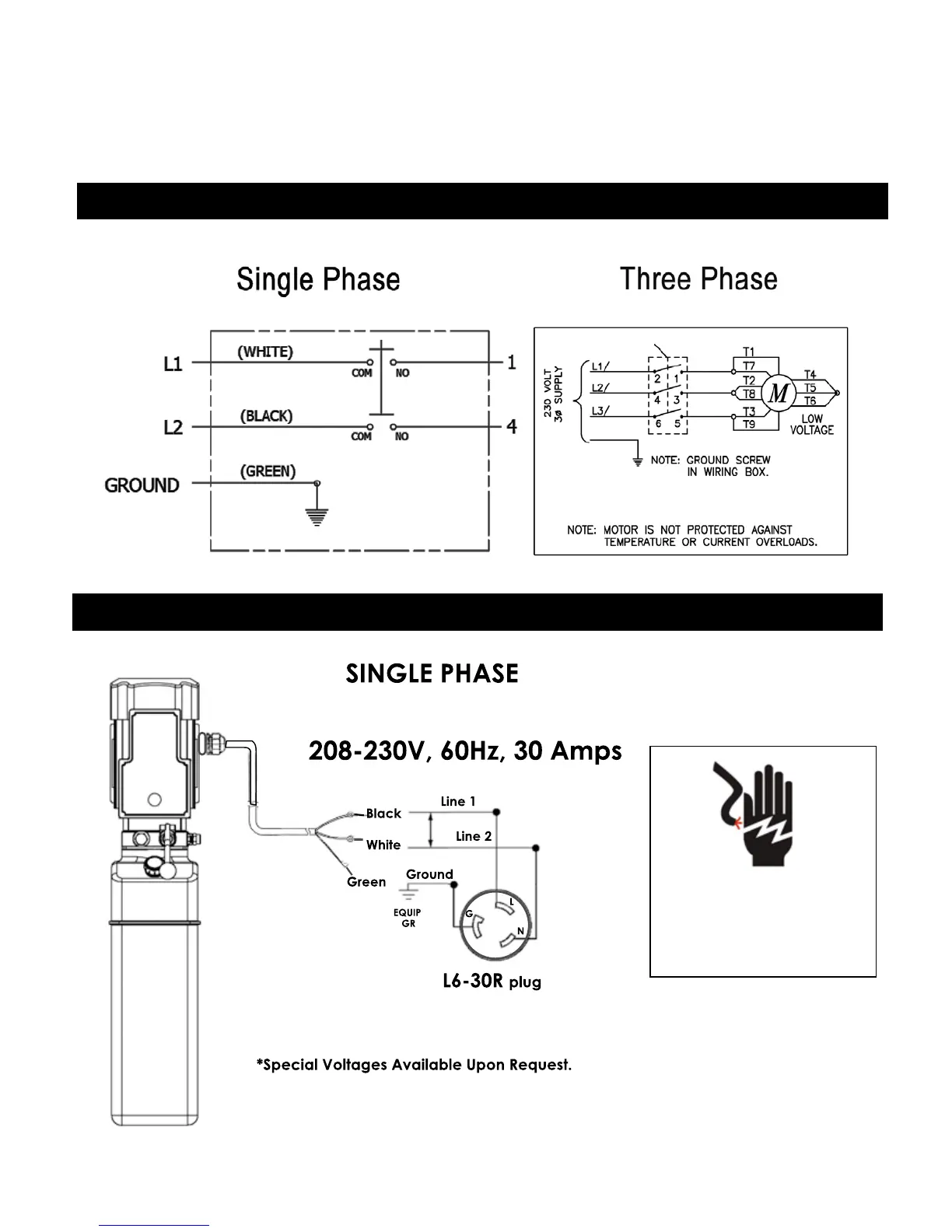 SEE WIRING INSTRUCTIONS AFFIXED TO MOTOR FOR PROPER WIRING INSTRUCTIONS.