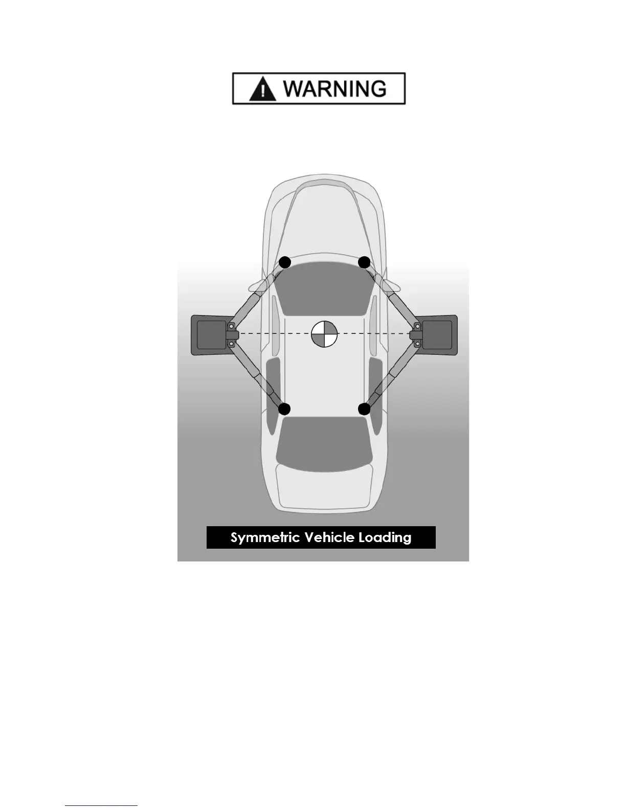 Before lifting the vehicle, make sure it is neither front nor rear heavy. See image below.