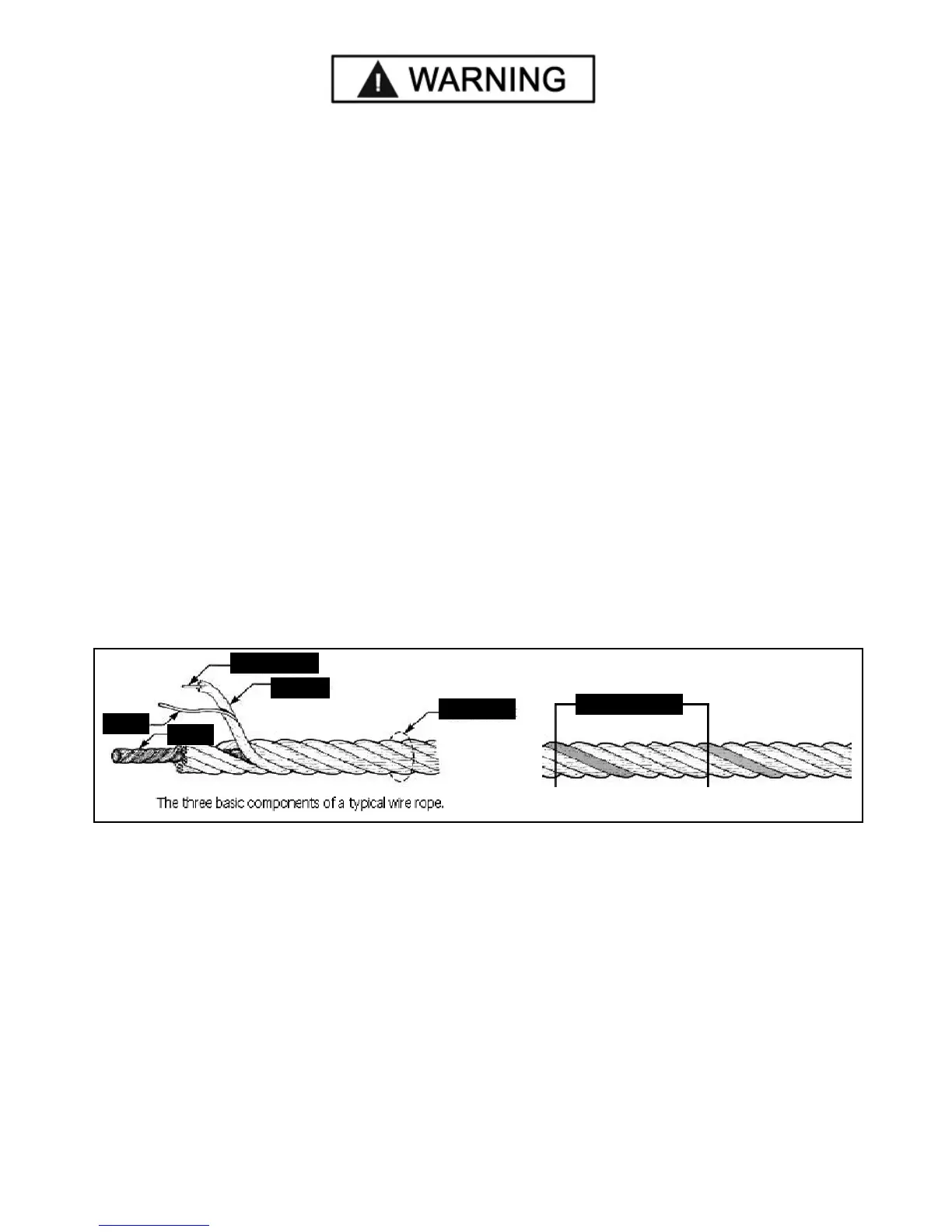t Lifting cables should be removed from service when you see six randomly distributed broken wires within any one lay
