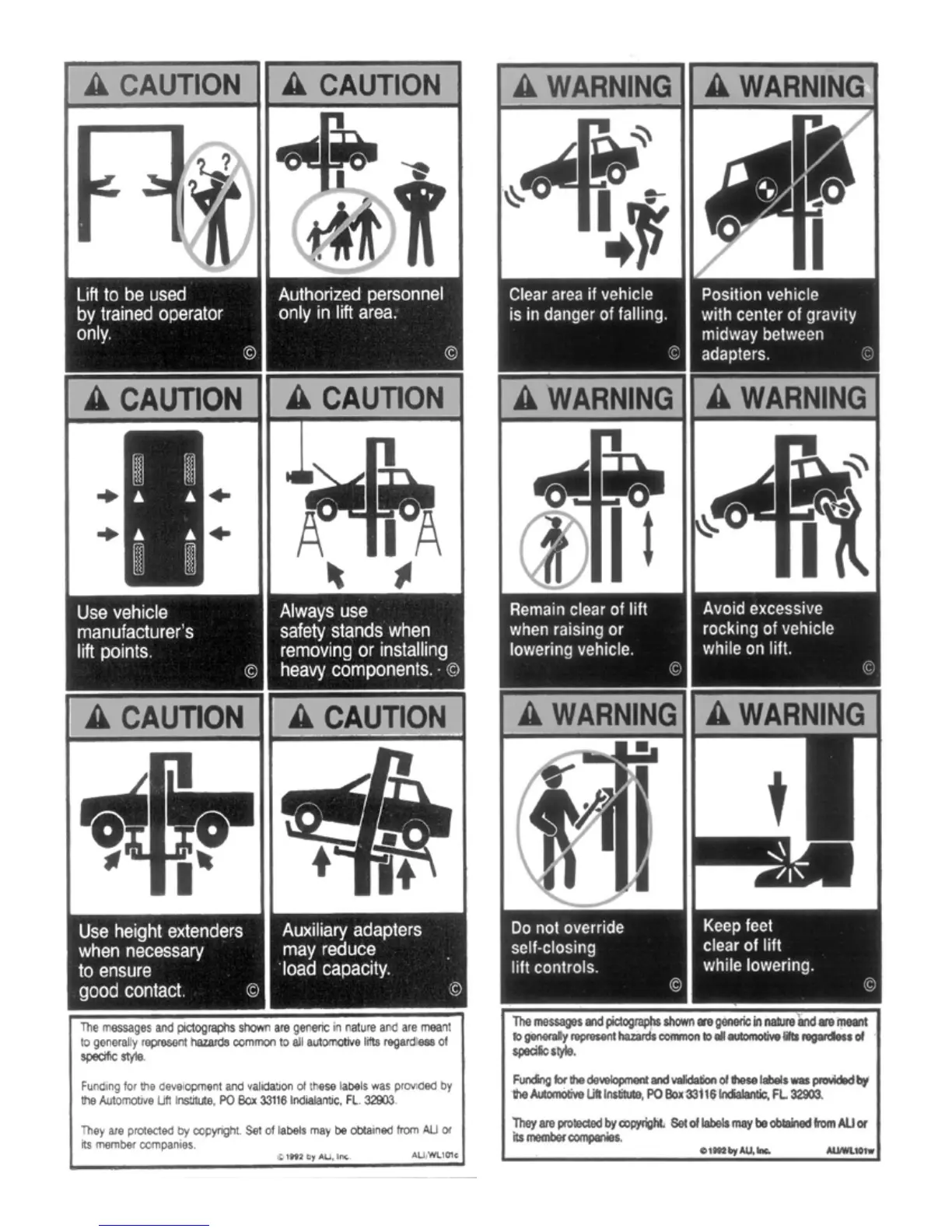 BendPak XPR-9TS - Safety Pictographs and Warnings