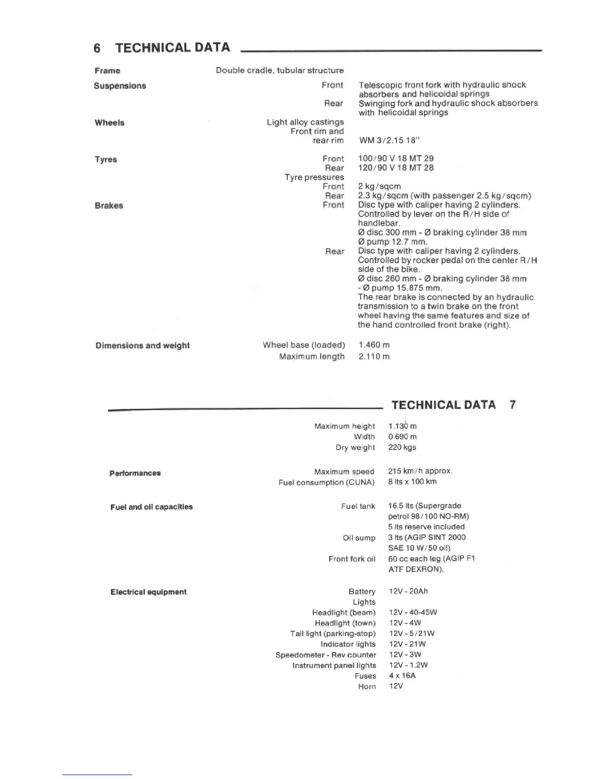 Benelli 900 Sei - 4 TECHNICAL DATA; Engine Specifications; Carburetion and Fuel System; Lubrication System