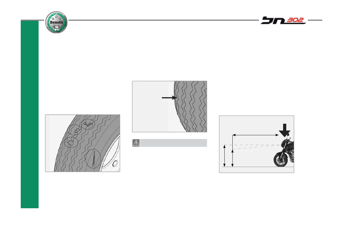 • Check for wear. Replace tyres if the