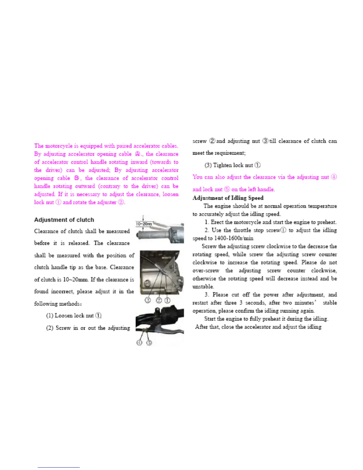 Benelli BN600 - Adjustment of Clutch; Adjustment of Idling Speed
