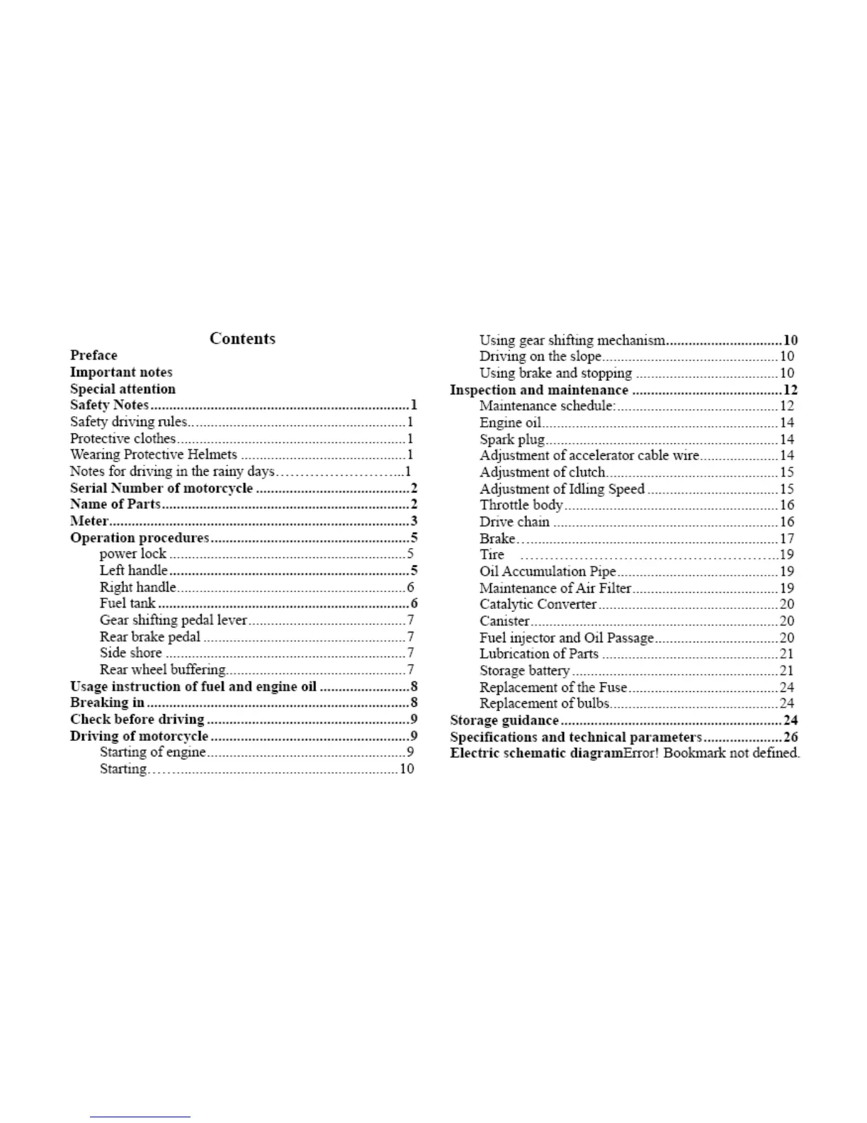 Benelli BN600 - Contents