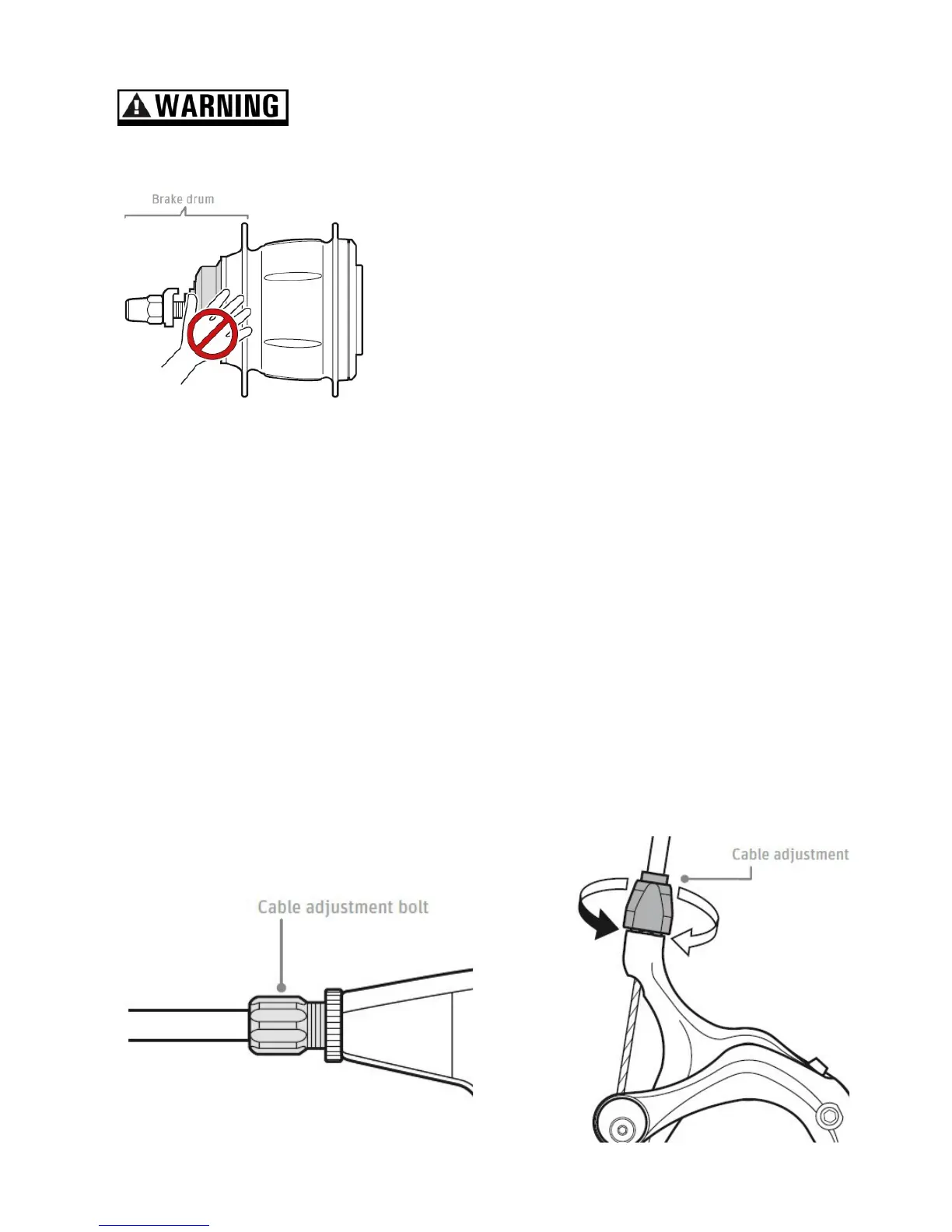Turn the cable adjustment bolt to adjust the clearance between the brake pad and the rim.