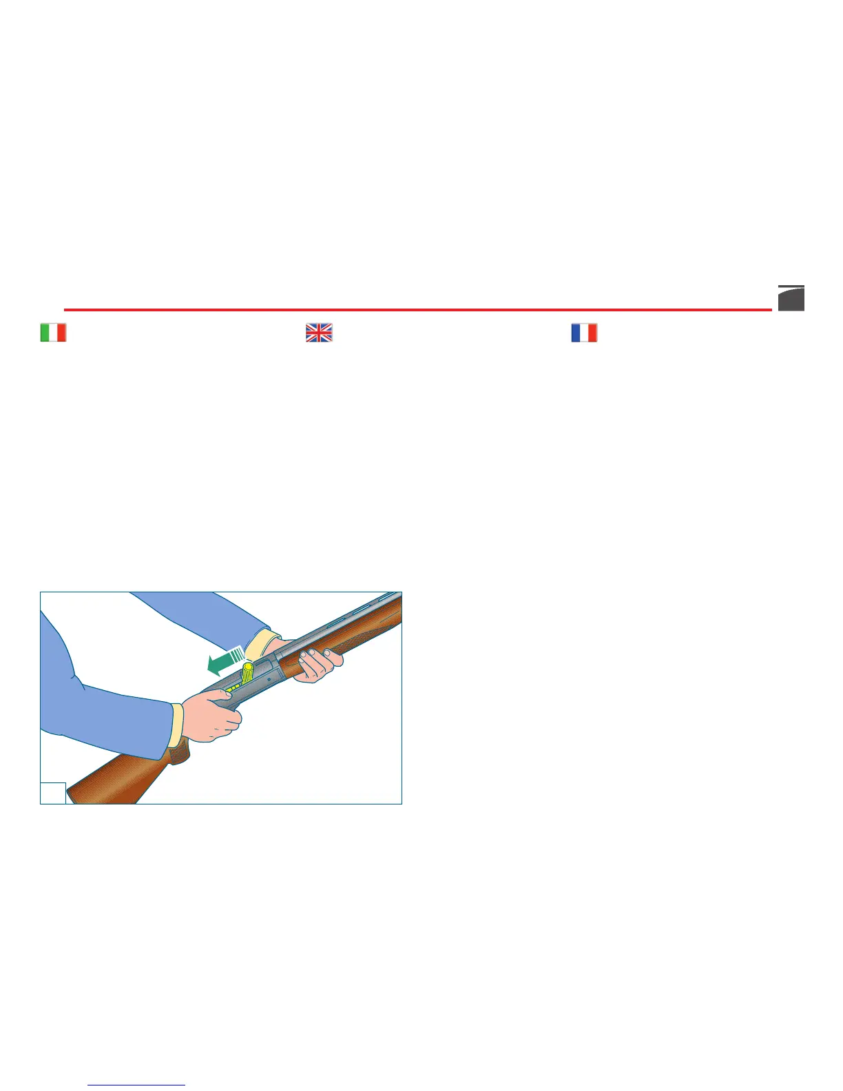 1) Appoggiare il calcio sull’anca ed aprire