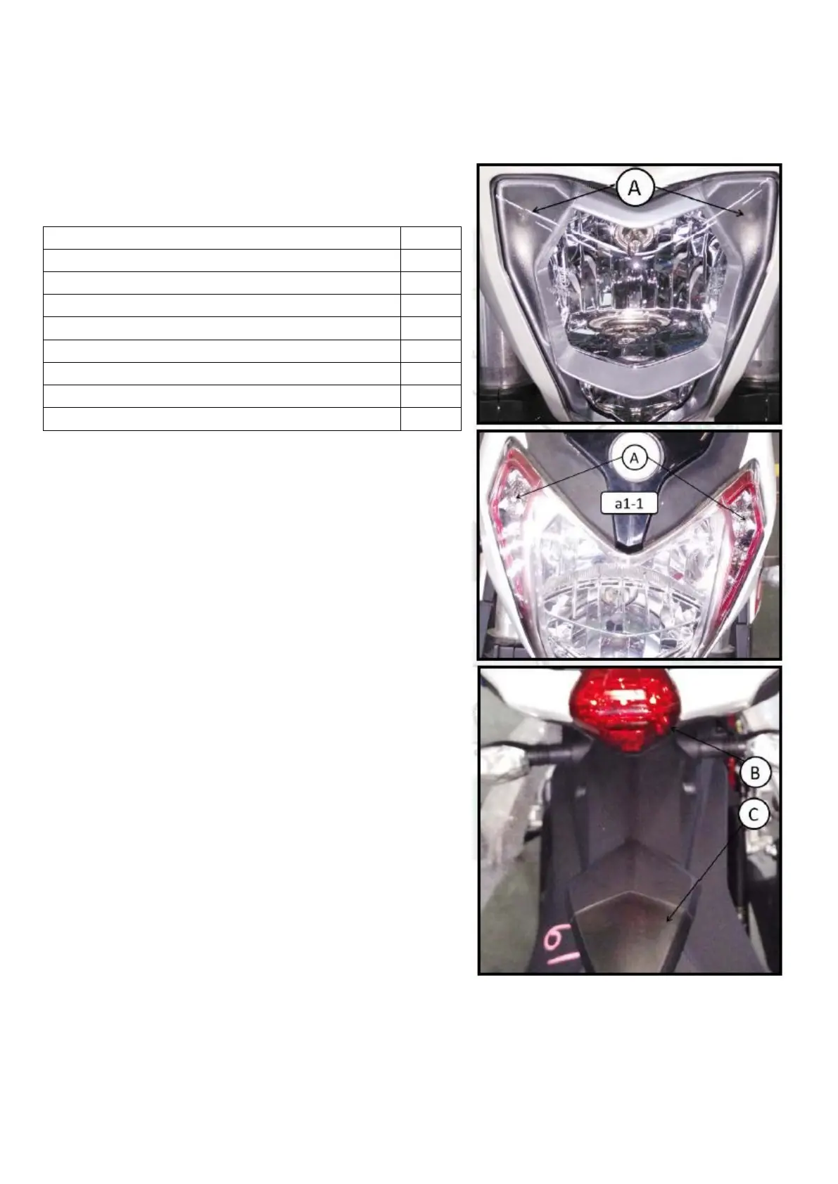 ●All motorcycle lamps will be on according to the order shown in