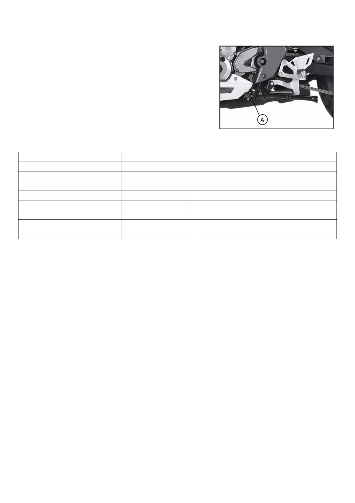 ●Check the side stand switch [A] according to the table below.