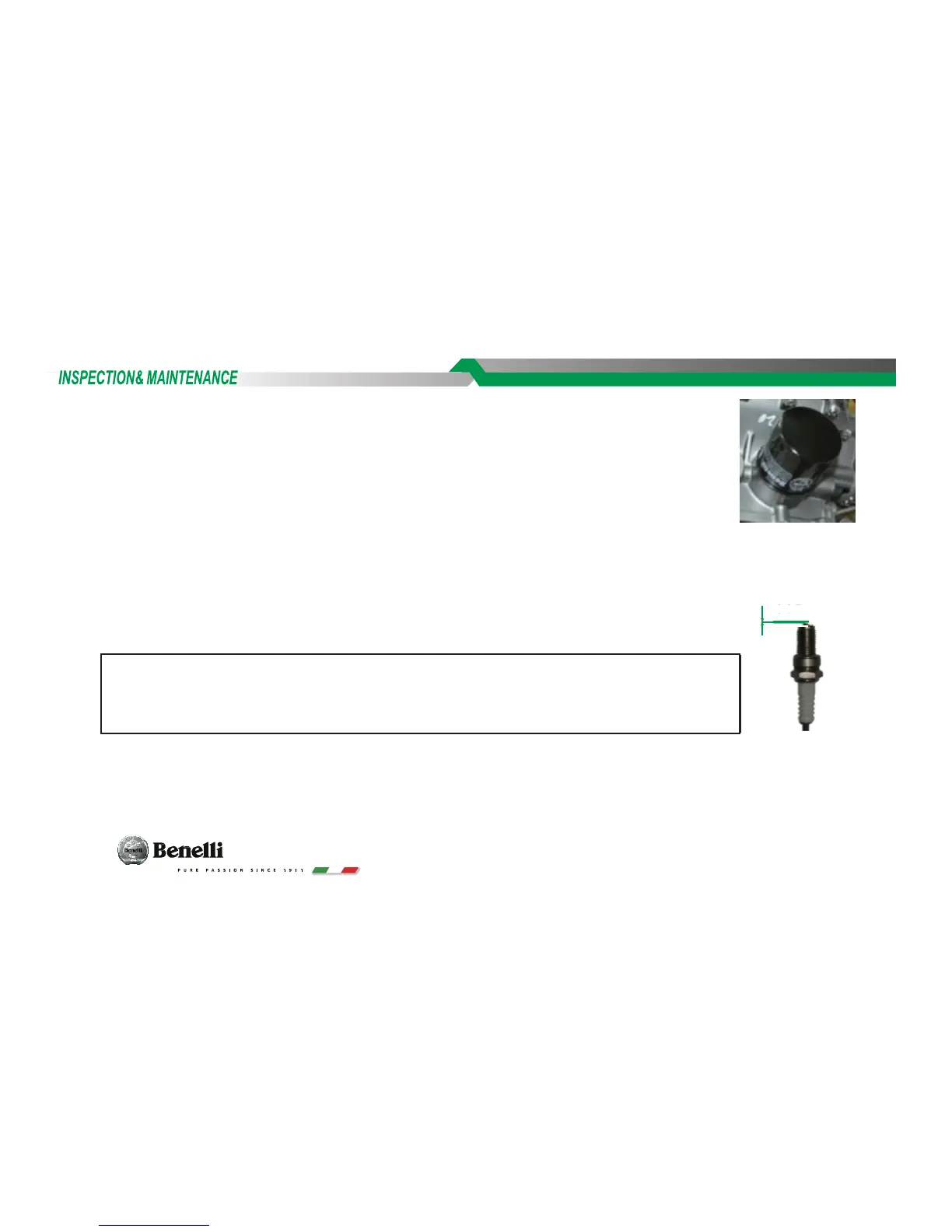 Benelli TNT300 - Spark Plug and Catalytic Converter Care; Spark Plug Inspection and Replacement
