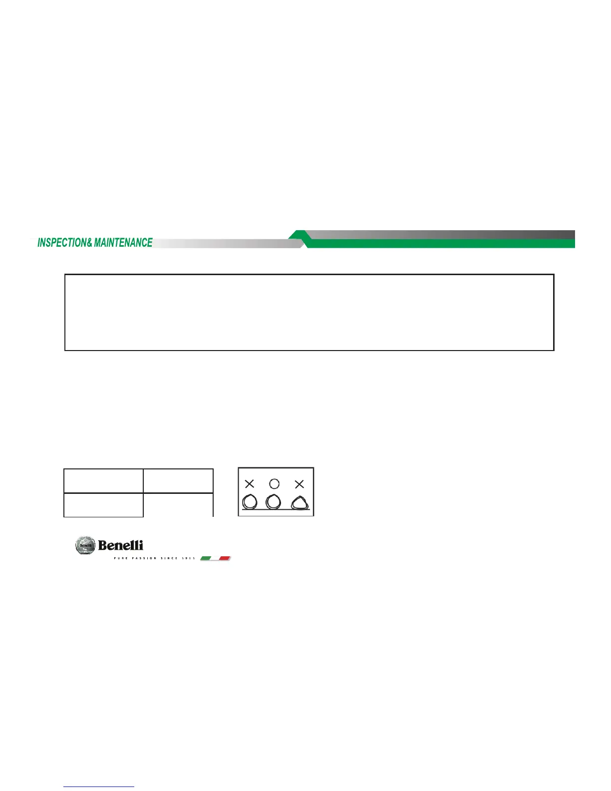 Benelli TNT300 - Tire Maintenance and Pressure Checks; Valve Clearance Adjustment Recommendation; Tire Inflation and Tread Condition; Tire Pressure Specifications