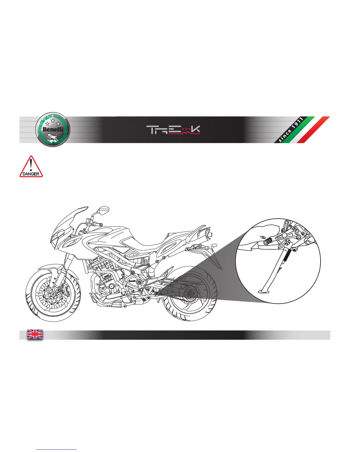 To move the side stand to its rest position (horizontal position), tilt the motorcycle to the right and, at the same time, lift