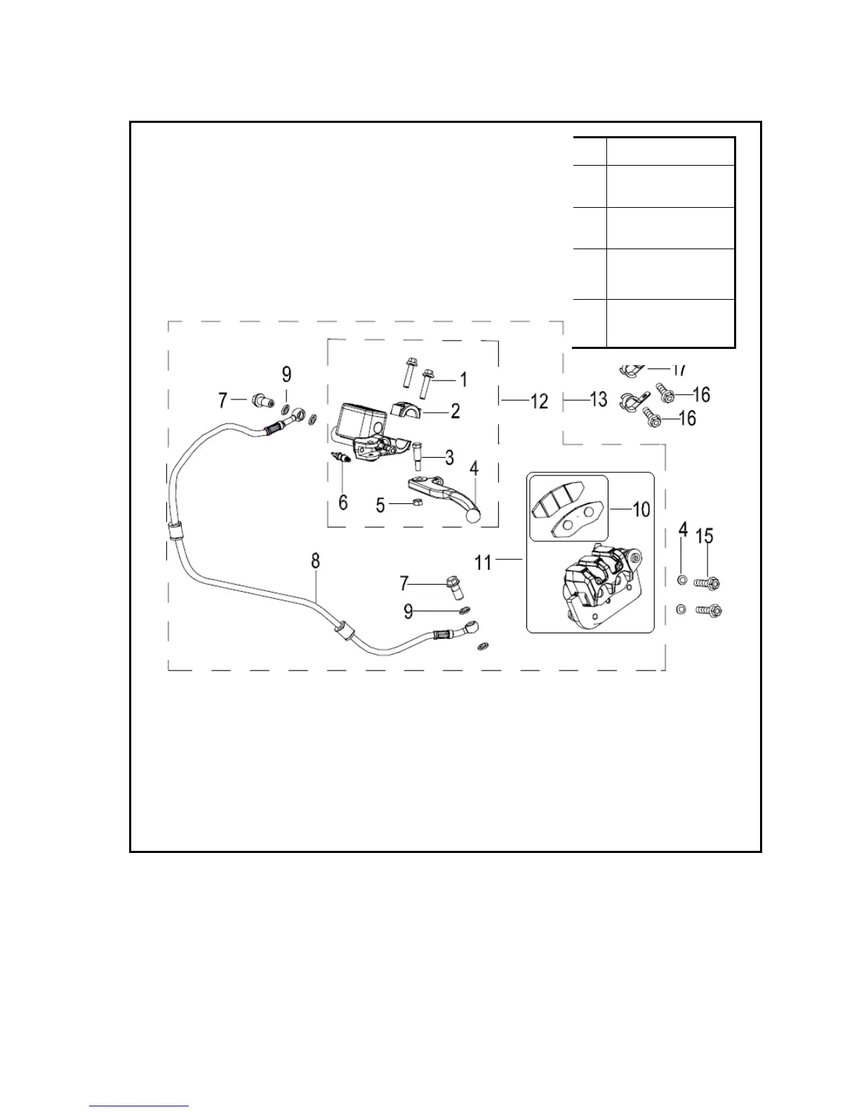 Brake Caliper Assembly 12.) Rear Brake Master Cylinder Assembly 13.) Rear Brake Assembly 14.)