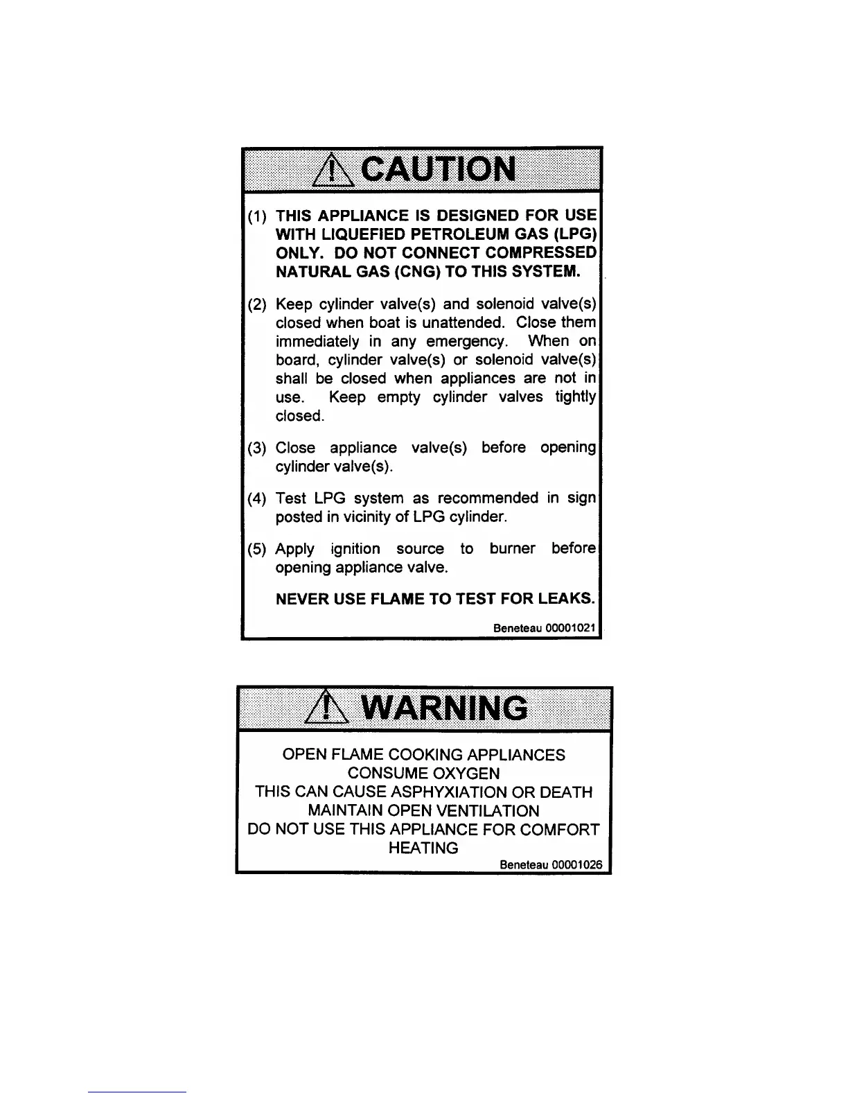 BENETEAU 331 - Propane Labels