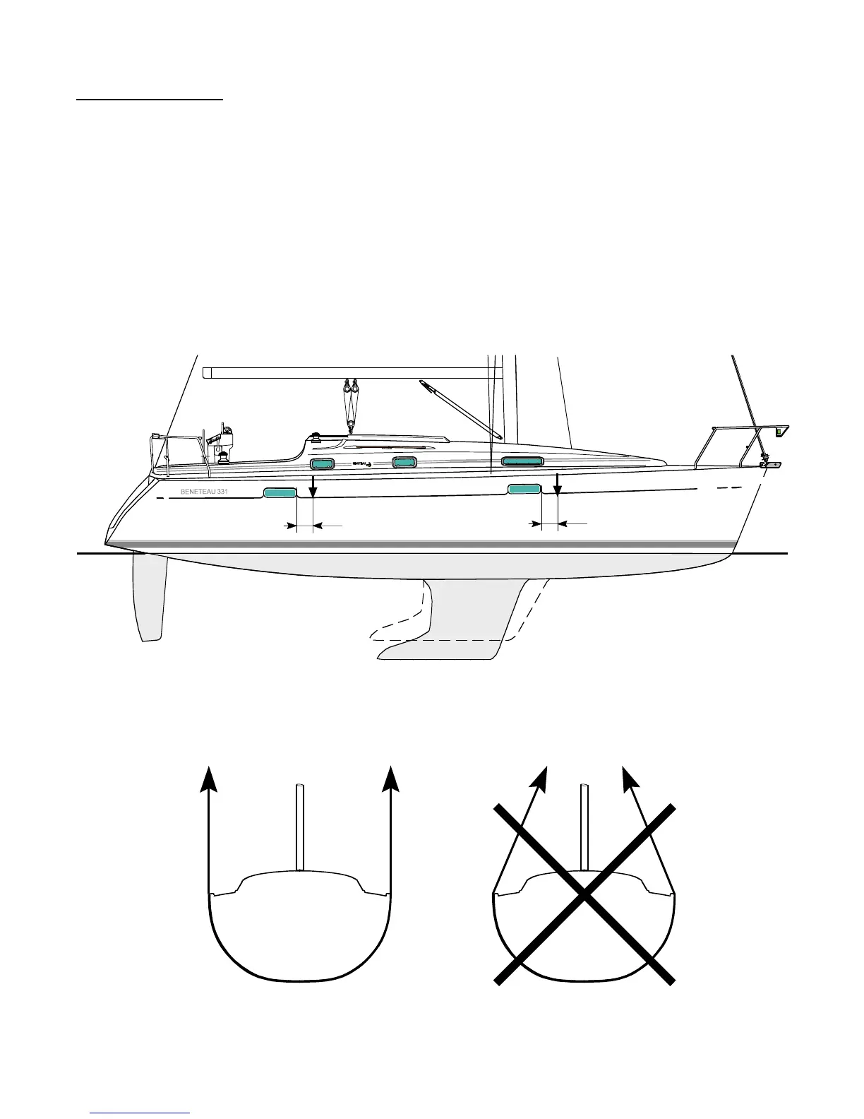 POSITION OF LIFTING STRAPS AND CRADLE POSITION.