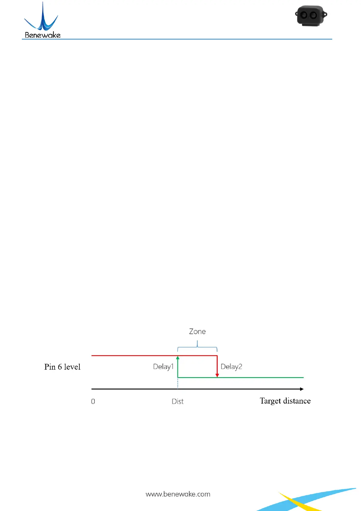 Zone value: If an object is detected closer than Dist, then Pin 6 outputs high-level, but only if an