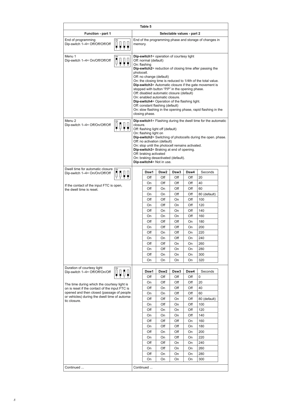 Dsw1 Dsw2 Dsw3 Dsw4 Seconds