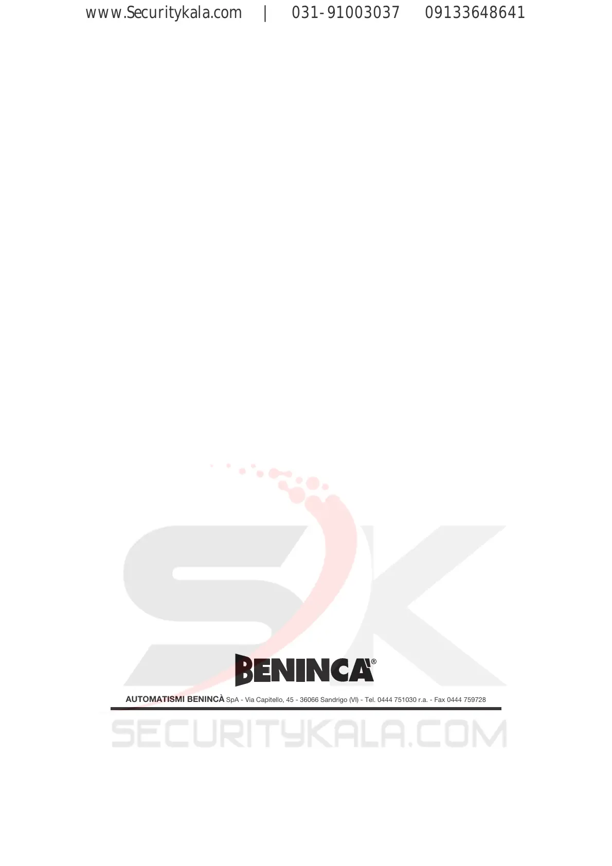 AUTOMATISMI BENINCÀ SpA - Via Capitello, 45 - 36066 Sandrigo (VI) - Tel. 0444 751030 r.a. - Fax 0444 759728