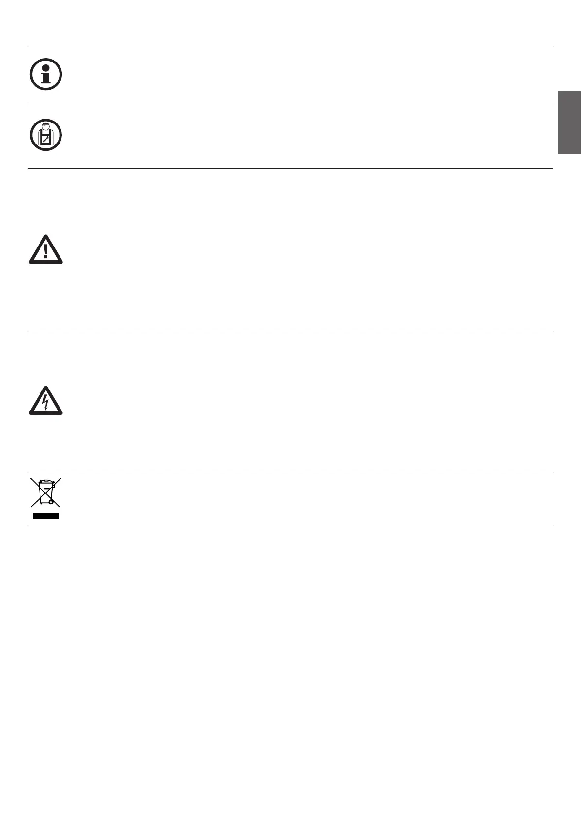 During installation, maintenance and repair, interrupt the power supply before opening the lid to access the electrical parts