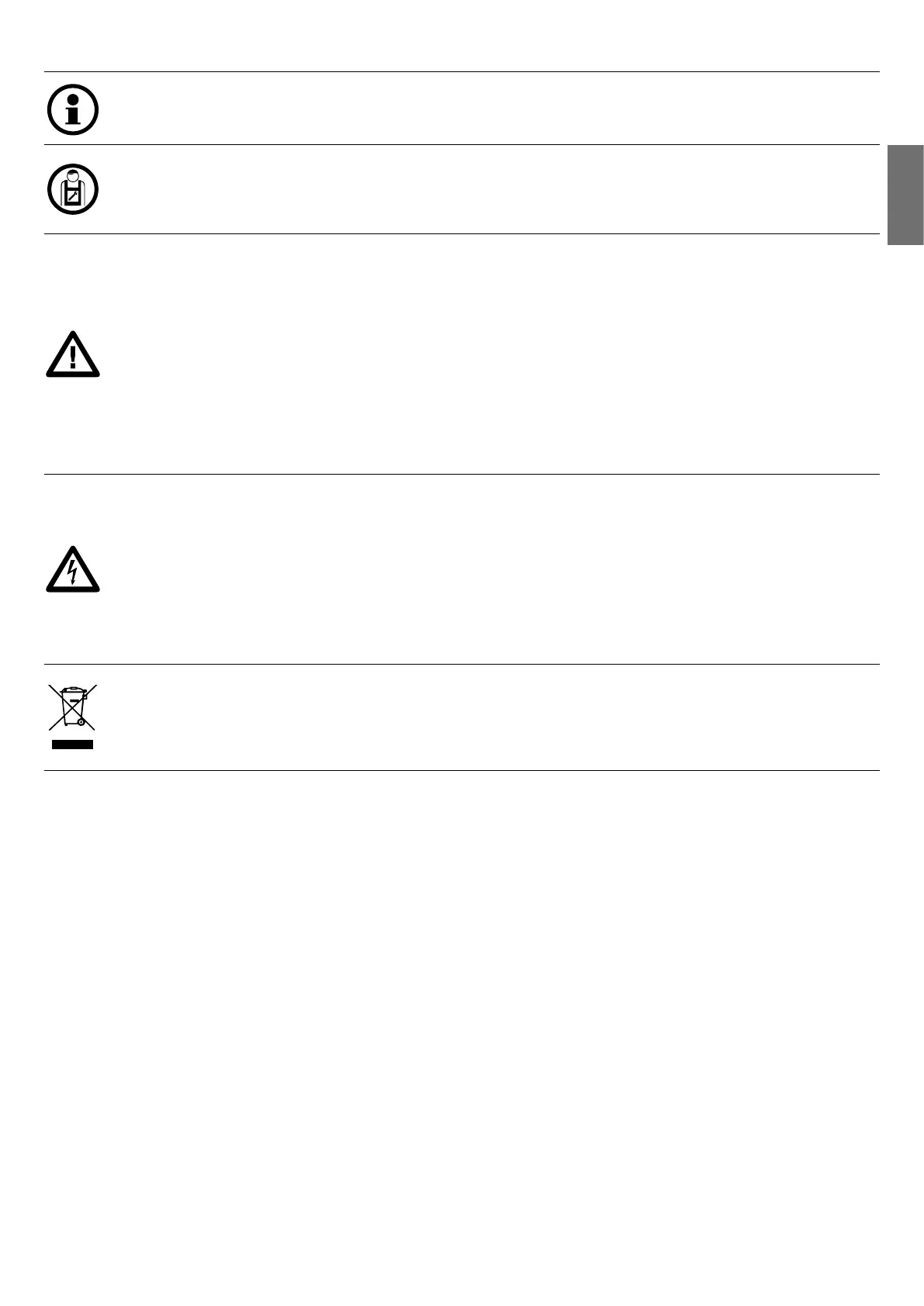 During installation, maintenance and repair, interrupt the power supply before opening the lid to access the electrical parts