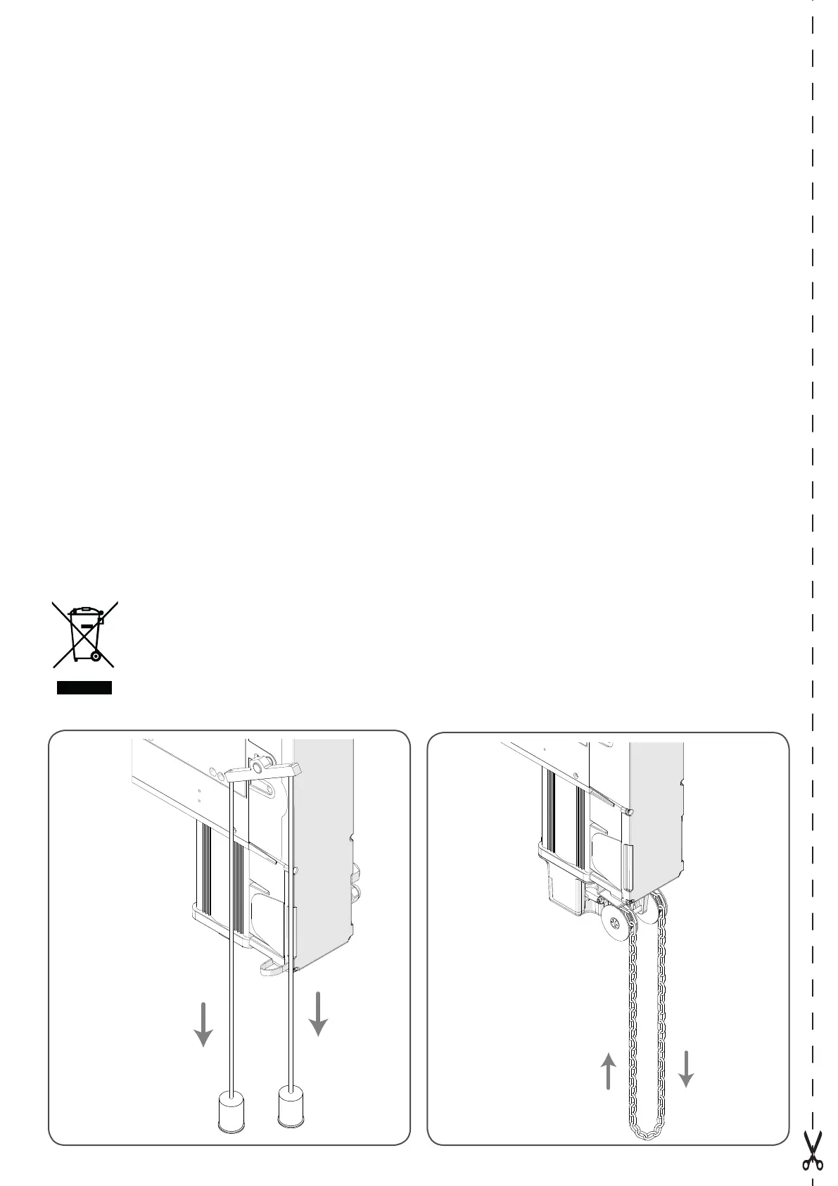 • Esaminare frequentemente che tutte le parti dell'automazione siano fissate saldamente e controllate segni di usura o danni a cavi, molle e fissaggi.