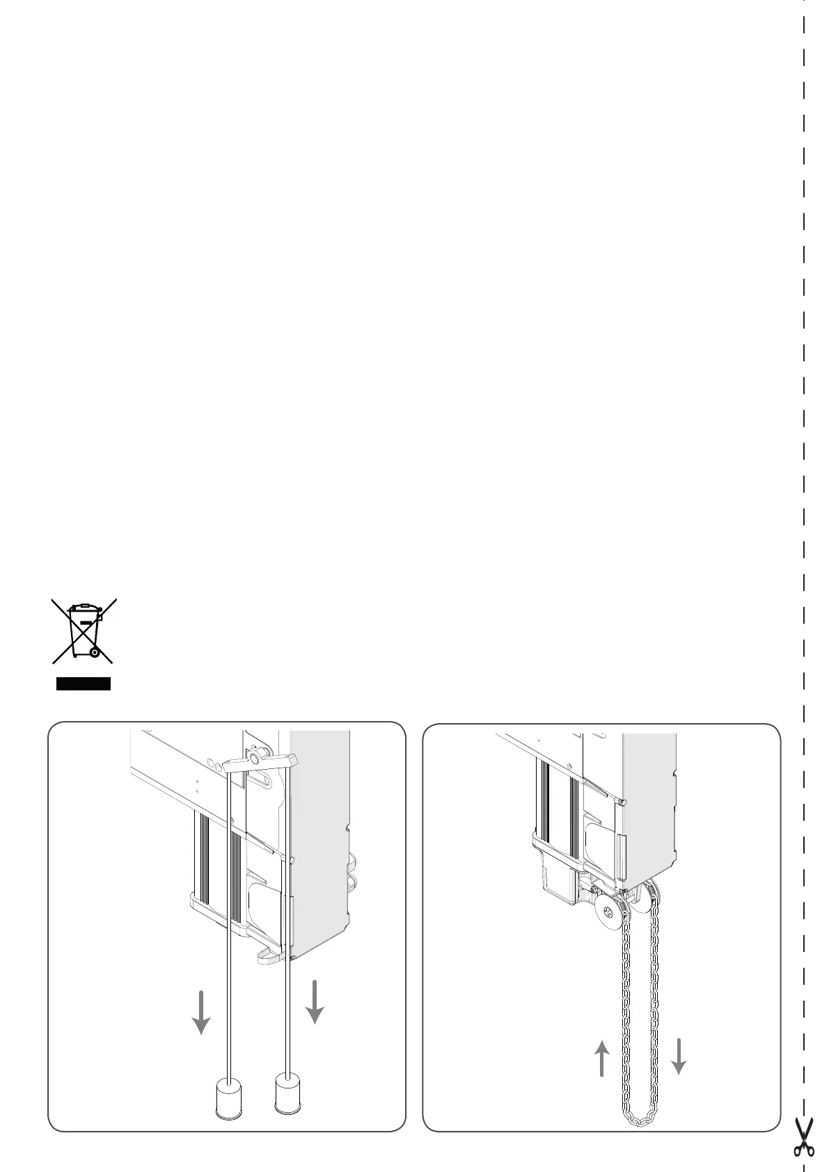 Un sistema de cadena conectado al eje motriz y, por ende, al eje de la puerta permite abrir / cerrar la puerta.