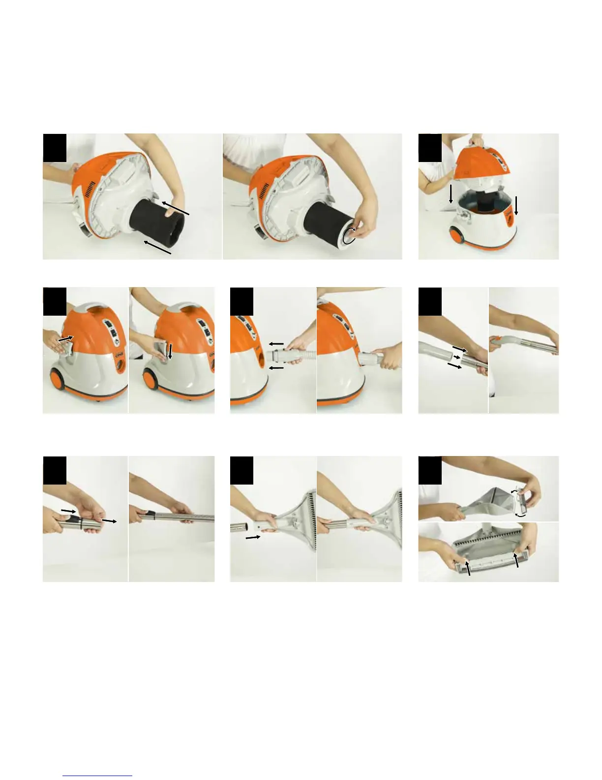 Fasten foam filter in-place by inserting and tightening the filter securing lock (15) clockwise