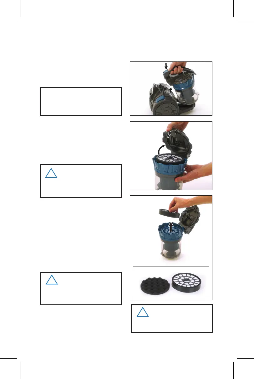 the dirt container release button (9) and
