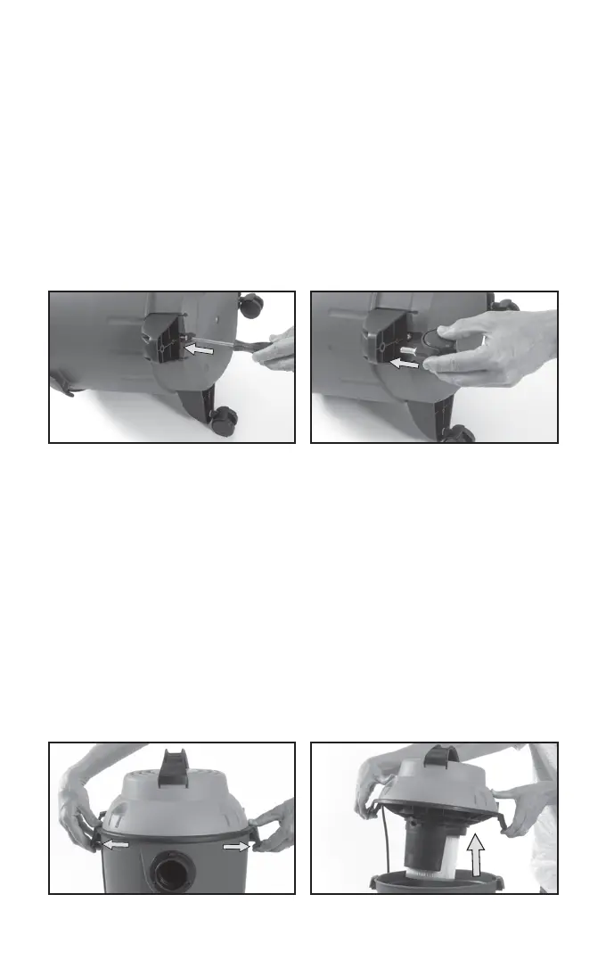 1. Remove the Motor Unit (2) from the Dirt/Water Tank (4) by pulling the Locking Clips (3) outwards