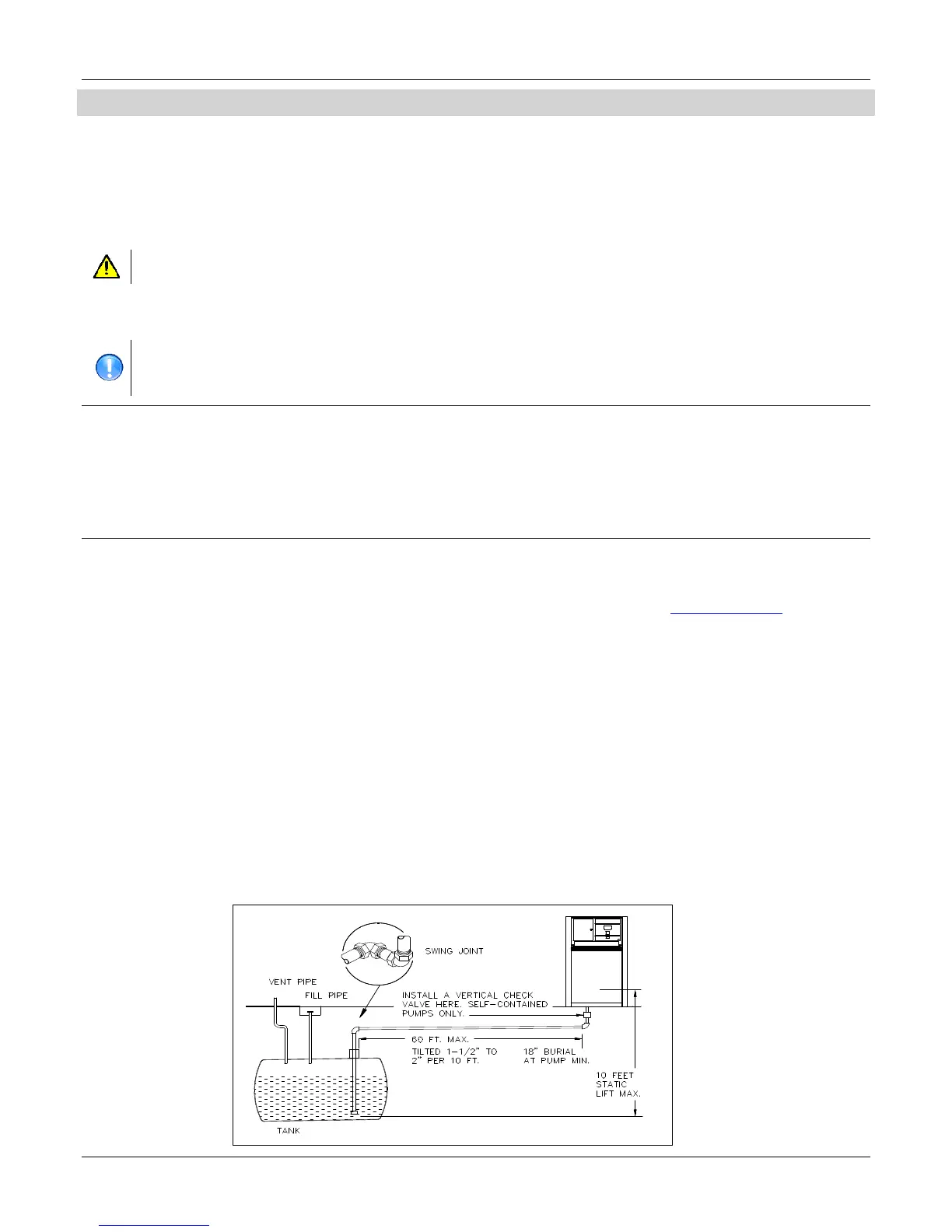 Swing joints or flex pipe must be used at the ends of the horizontal pipe between the dispenser and the tank. These joints