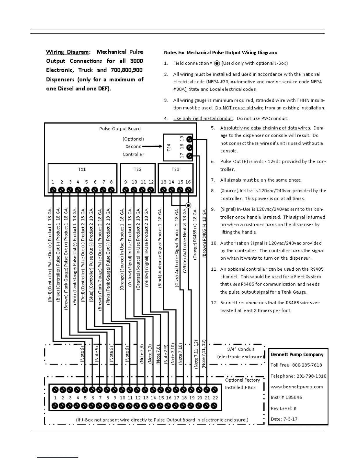 Bennett 3000 Series - Pulse Output Board Wiring Diagram