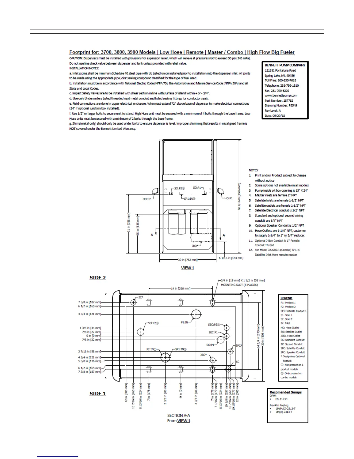 Bennett 3000 Spec 300 Series Instruction Manual Footprints & Wiring Diagrams