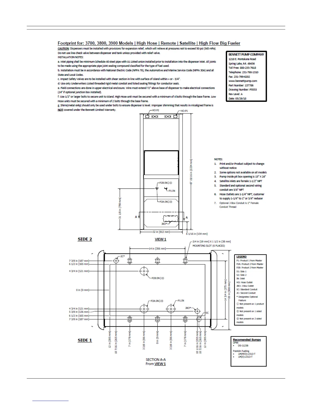 Bennett 3000 Spec 300 Series Instruction Manual Footprints & Wiring Diagrams