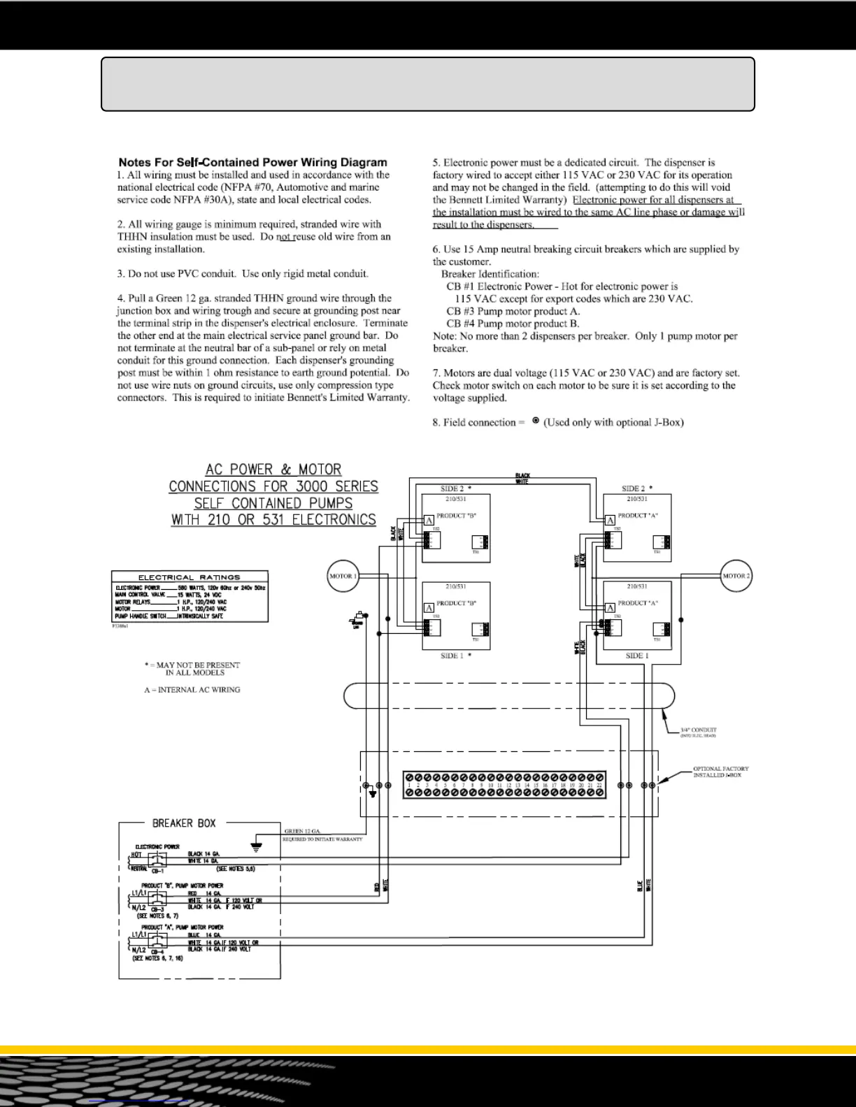 Bennett 3711 - Self Contained Power Wiring Diagram AC Power & Motor Connections