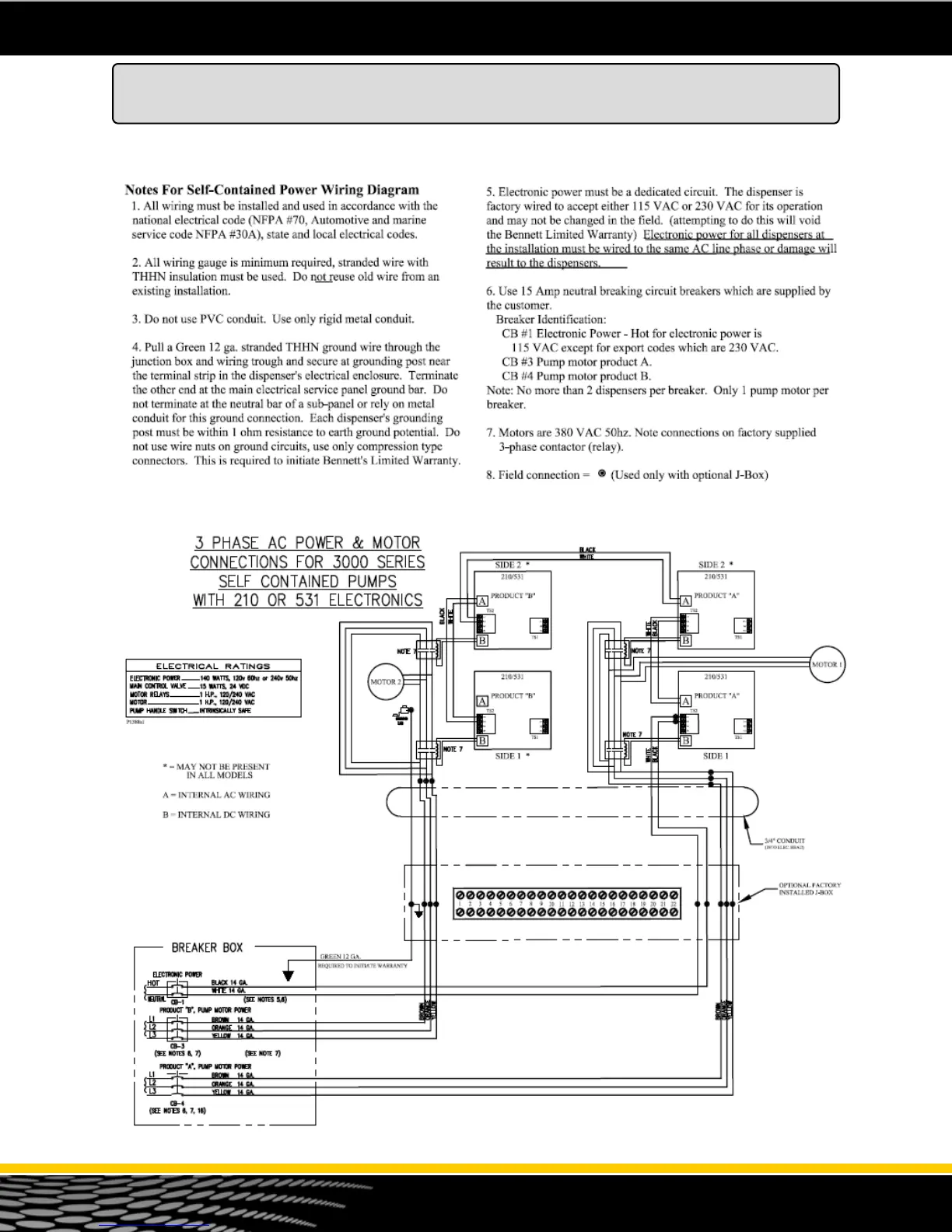 Bennett 3712 - Self Contained Power Wiring Diagram 3-Phase AC Power & Motor Connections