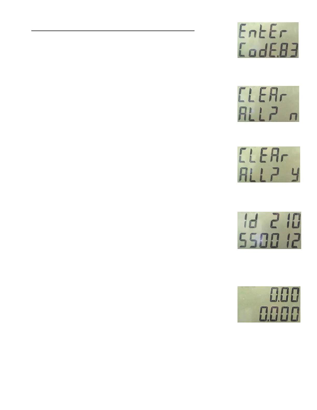 totals, or meter calibration constants. This mode also restores the security code back to the factory