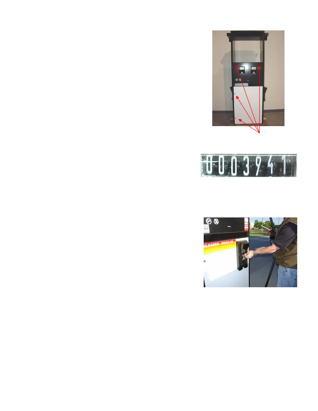 The electro-mechanical totalizers are located above each Individual Price