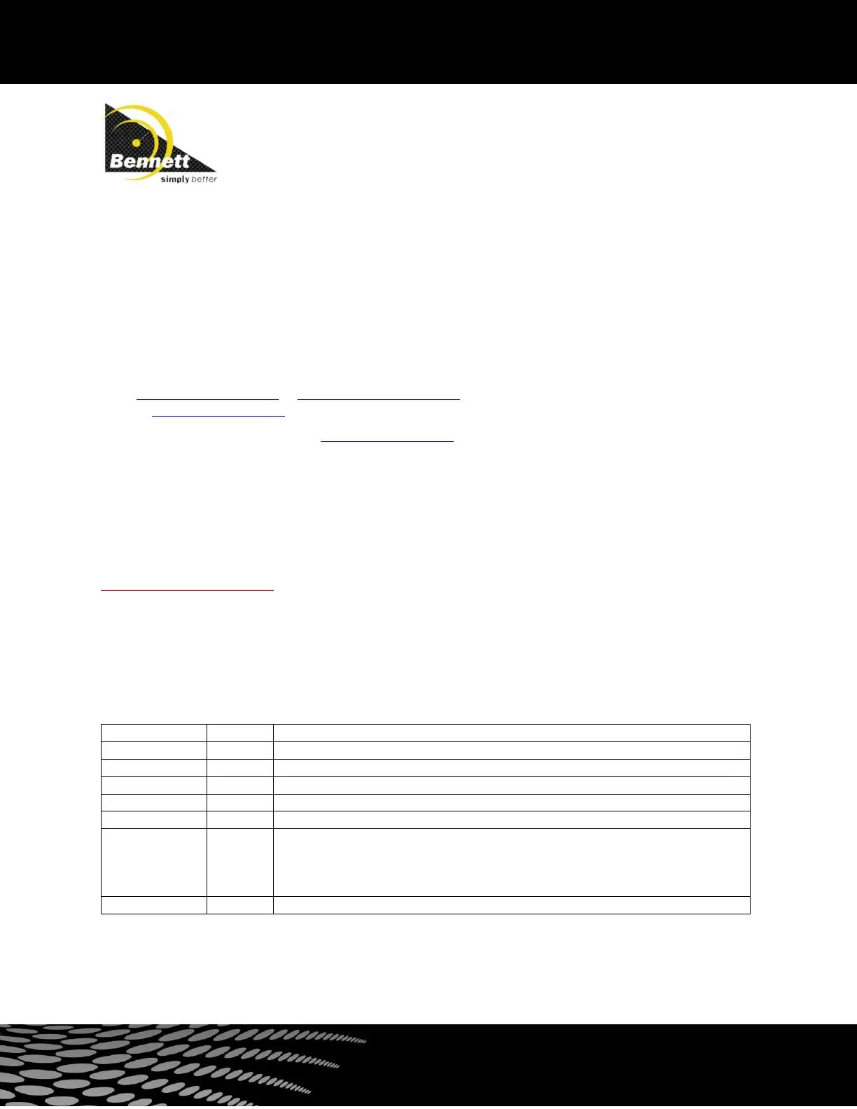 assist. If further assistance is required, please contact the Bennett Technical Service Department at 1-800-423-6638.
