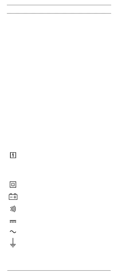 I bruksanvisningen och på BENNING CM 2 används följande symboler: