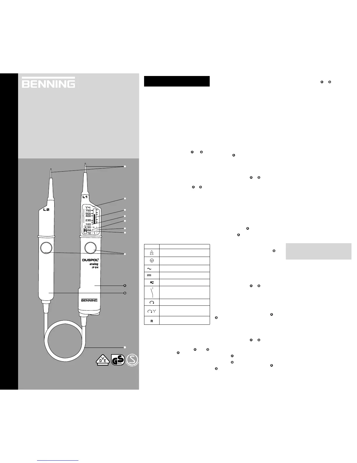 - Volttesteren må kun bruges i området 12 V - 500 V